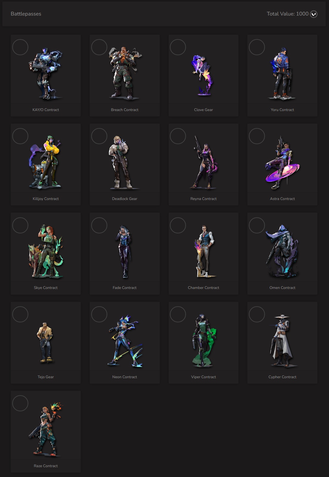✴️ Agents (16) Skins (35) Gun Buddies (133) Sprays (88) Cards (98) Titles (82)