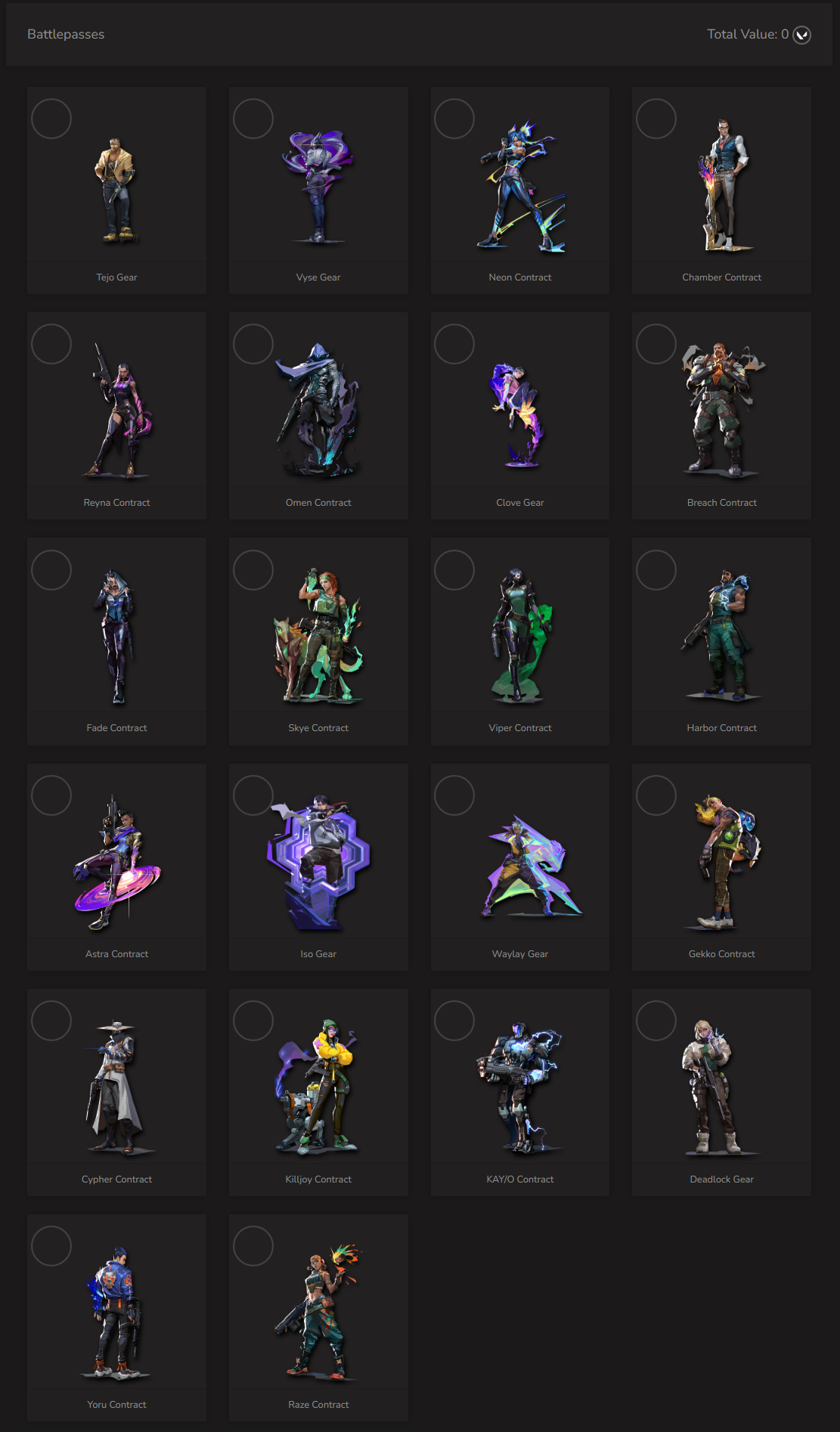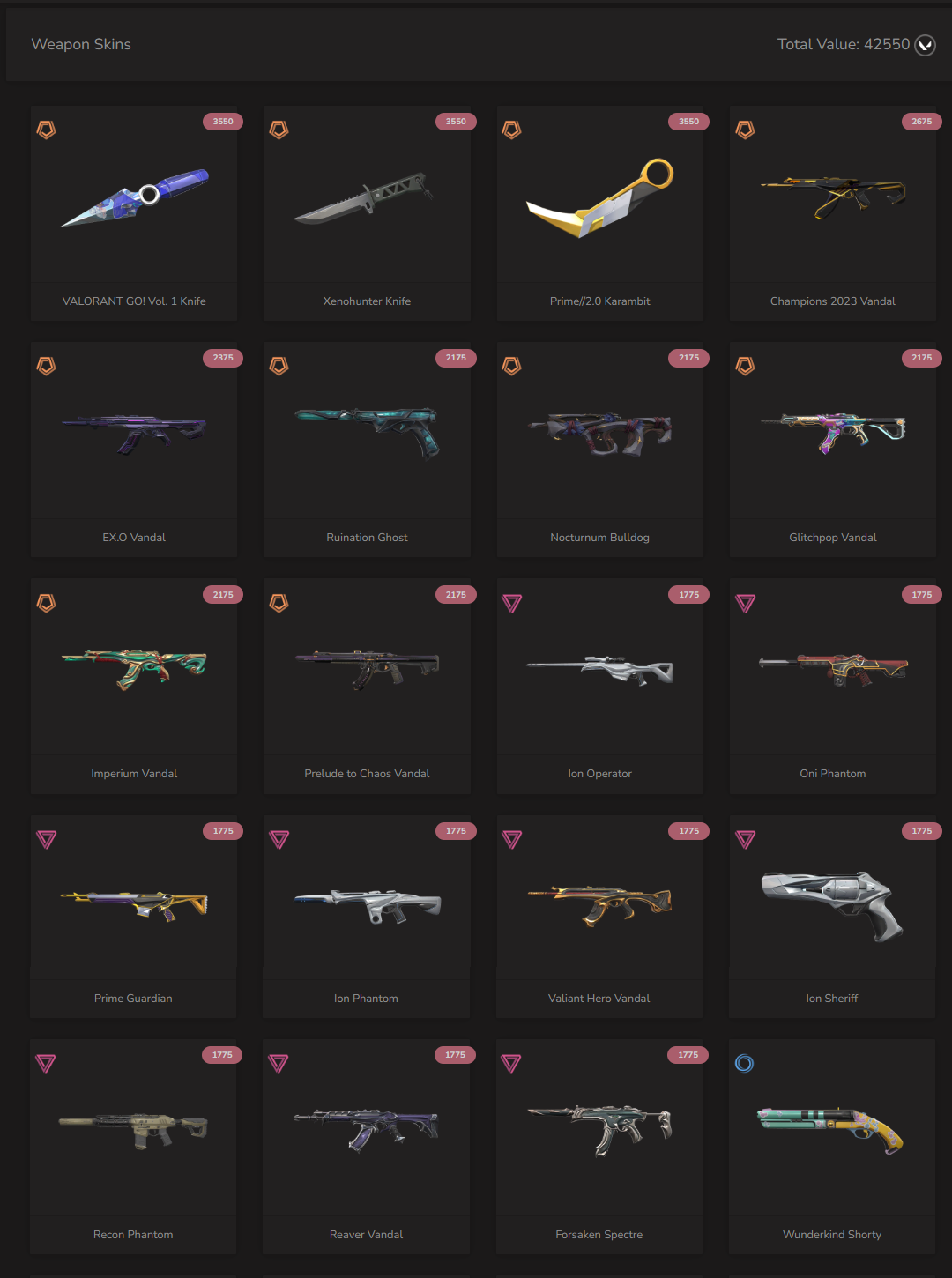 ✴️ Agents (22) Skins (51) Gun Buddies (269) Sprays (149) Cards (201) Titles (146)